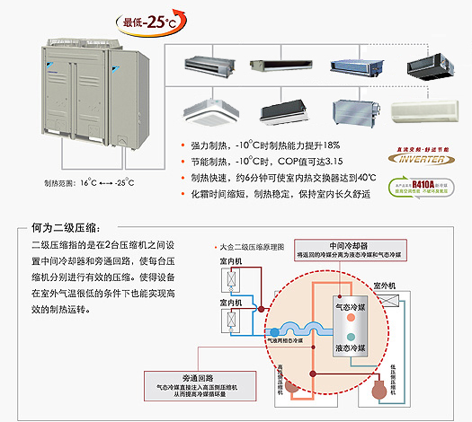 (2)運(yùn)轉(zhuǎn)范圍寬廣,制熱連續(xù)運(yùn)轉(zhuǎn)范圍低至-25℃